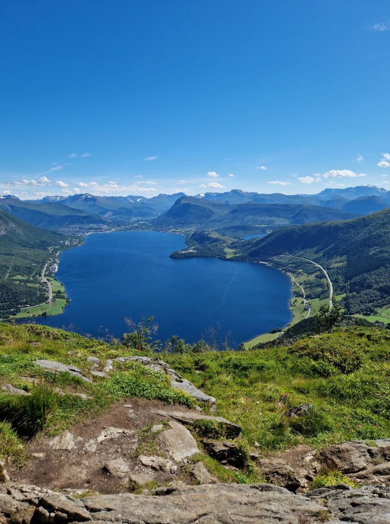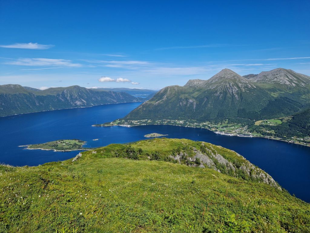 Drive towards Ulsteinvik, but take off before the undersea tunnel, where the sign says Berkneset and Steinnes.Follow Eidheimsvegen to the parking placeParkingspace to the leftFollow the gravel road upwards from the parkingspace. Where the road splits, take left to get to the gapahuk, and take right to get to LidavetenView from the GapahukIf you are going to Lidaveten, the trail starts to the left, just before you reach the end of the gravel road.At the end of the trail, this sight meets you at the top of Lidaveten.View towards Ørsta.View towards Eiksund and LeikongView towards Liadal and Raudøya